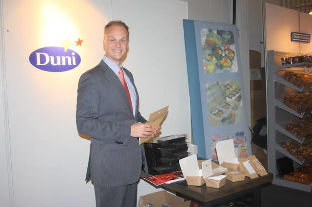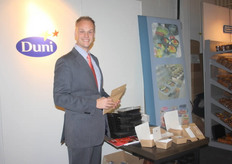 "Jan Arne den Boef van Duni laat de bio-afbreekbare verpakkingen van Echo Echo zien. "De range verpakkingen wordt steeds breder."