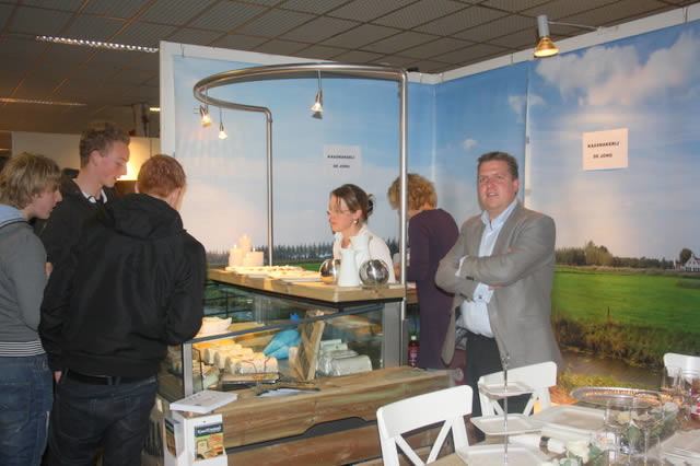 "Drukte bij de stand van De Jong Kaasmakerij. "Al onze geitenkaasproducten bieden wij ook in biologische vorm aan", aldus Arjan de Jong."