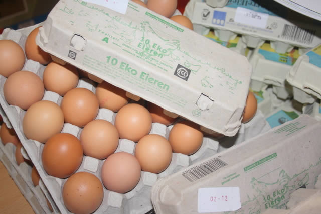 Eko-eieren in de stand van Eierenglorie Vermeulen.