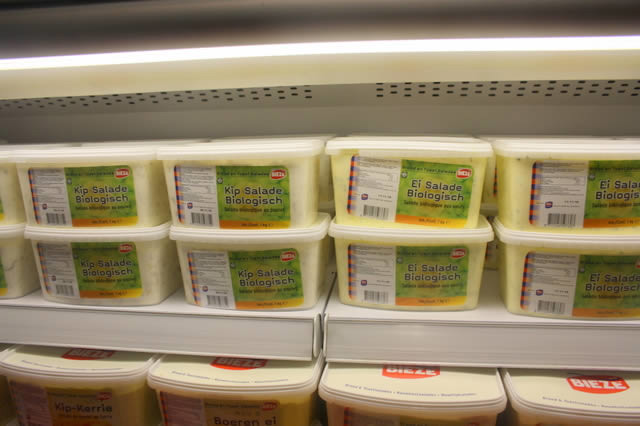 "Binnenkort hopen we het assortiment verder uit te breiden." Op de Foodbeurs voorlopig nog alleen kip- en eisalade."