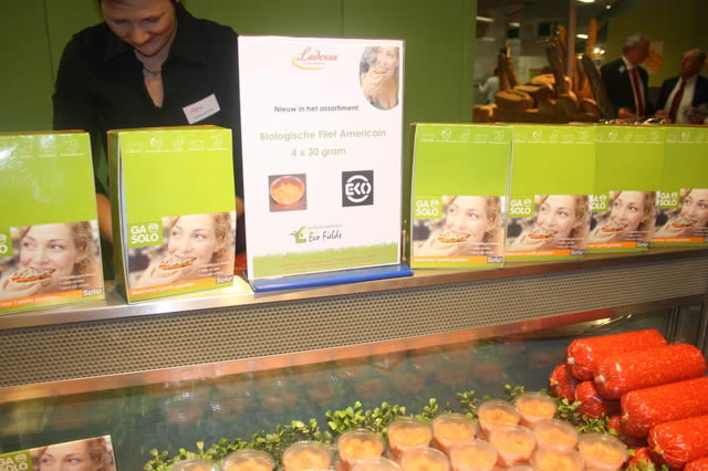 "Ladessa had één van de innovaties op de Kruidenier Foodbeurs: 100 procent biologische Filet Americain (van kalfsvlees). "Het vlees is afkomstig van Ecofields", legt Rudy Smit uit."