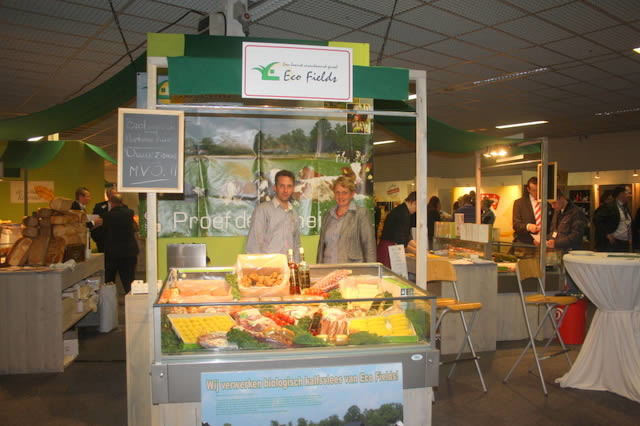 Marina Boon en Mathijs van Veenschoten van Eco Fields stonden in de stand ernaast.