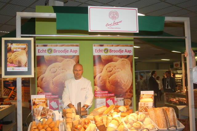 Carl Siegert van de gelijknamige biologische bakkerij promootte gisteren zijn Echte Broodje Aap.