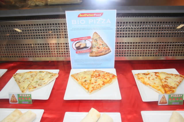 Nico Wassink van Best Partner Food introduceerde zijn biologische pizza in Hal 3. De pizza is verkrijgbaar in twee smaken: vegetarisch en margarita.