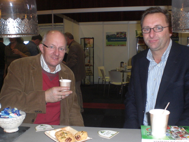 Erg gezellig... Gerard de Pee en Robbert Blok van Green Organics aan de bar van Biojournaal.