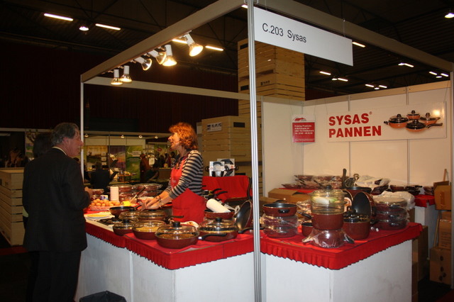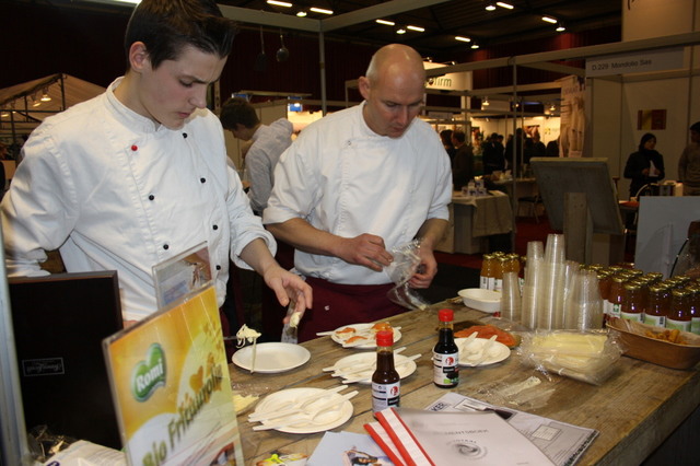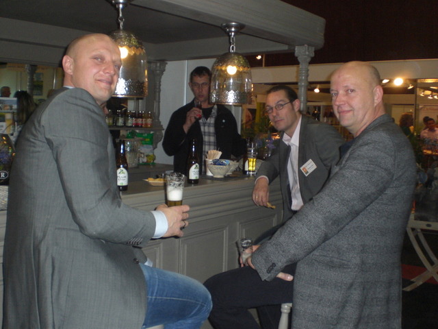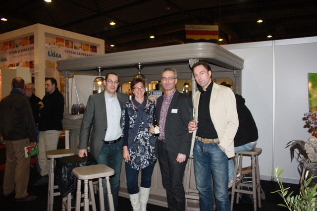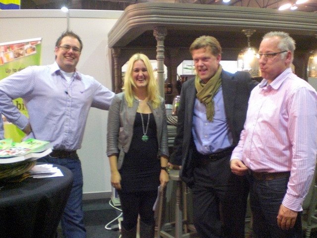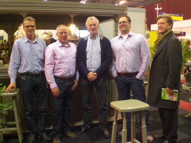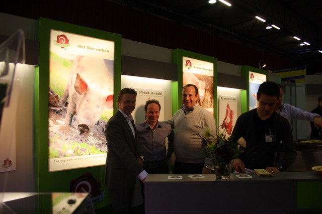 Paul van Dinther Han Eppink en Anton Bal trots op de stand van Top Quisine. Naast hen Mark Ebergen en Boudewijn Ba.
