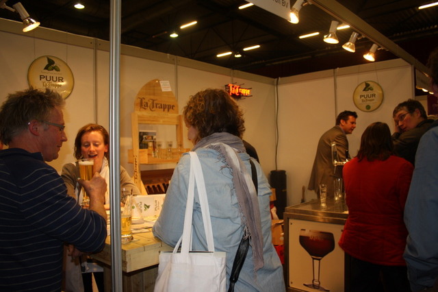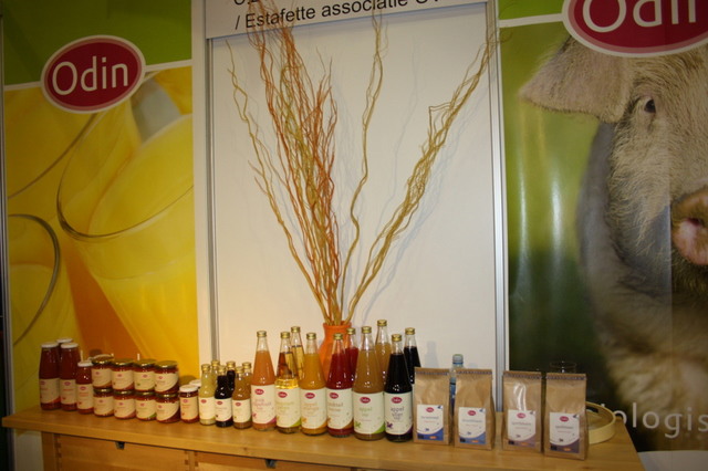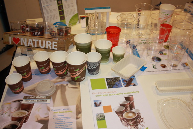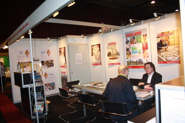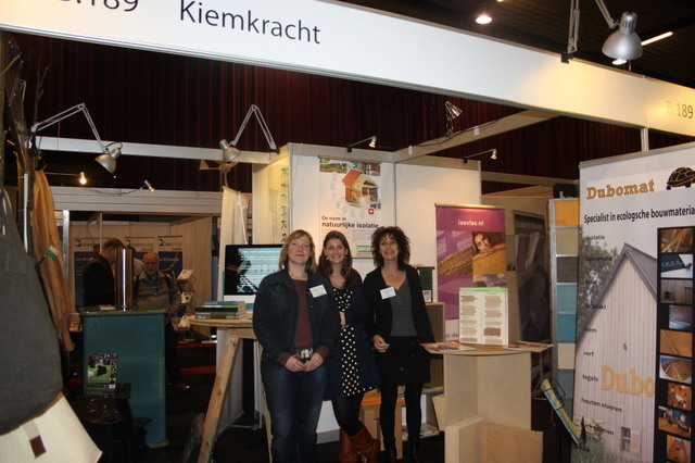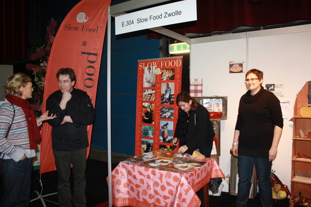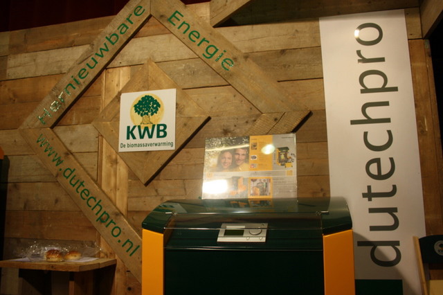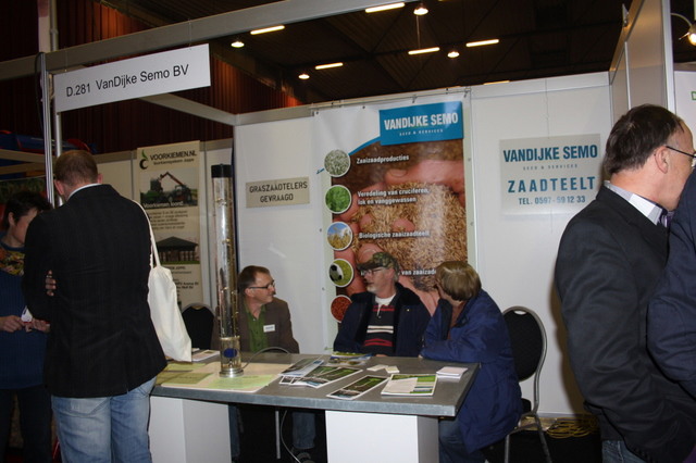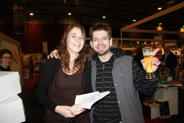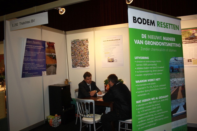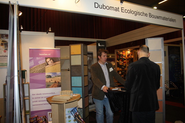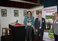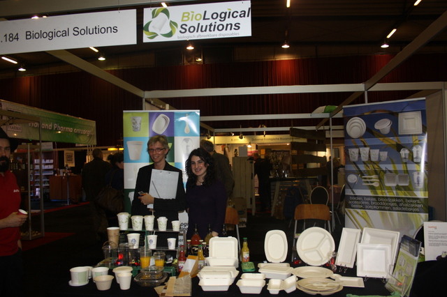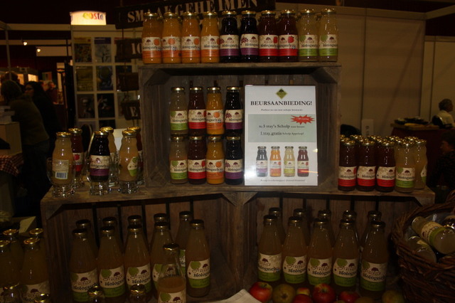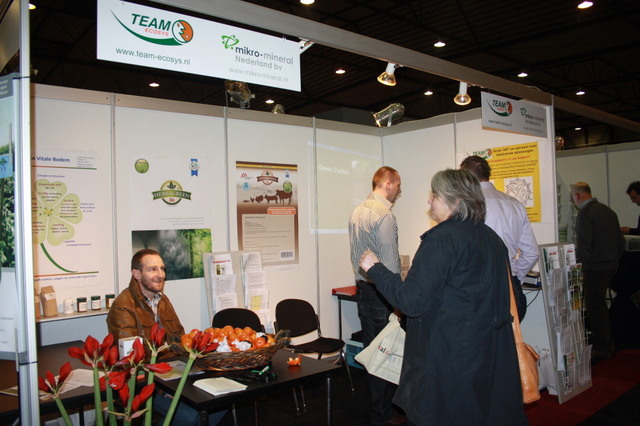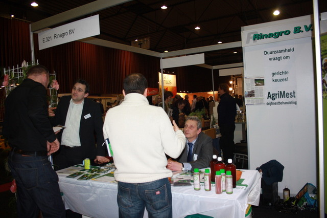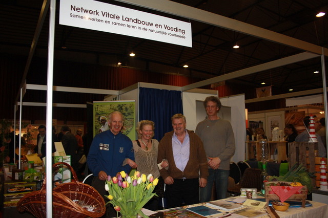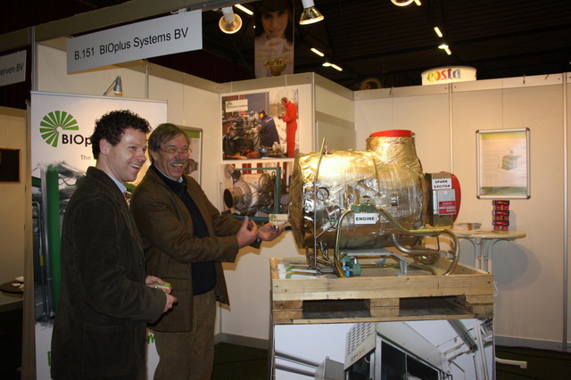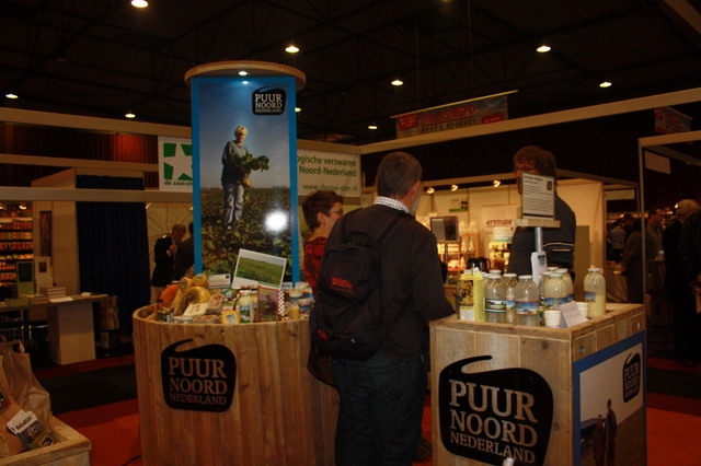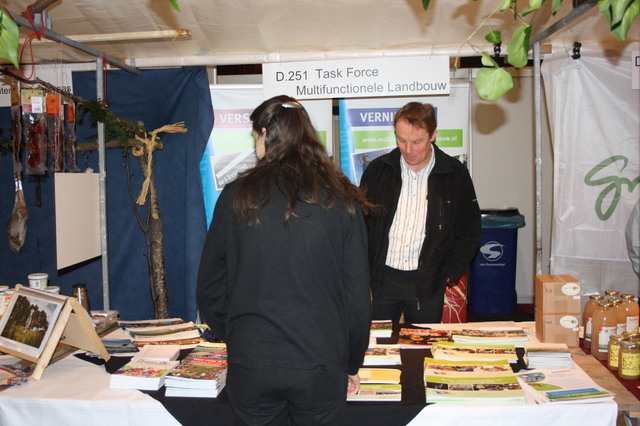 Even pauzeren bij de stand van het Biojournaal. Rechts Arie Verburg van FME.