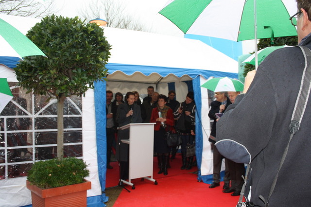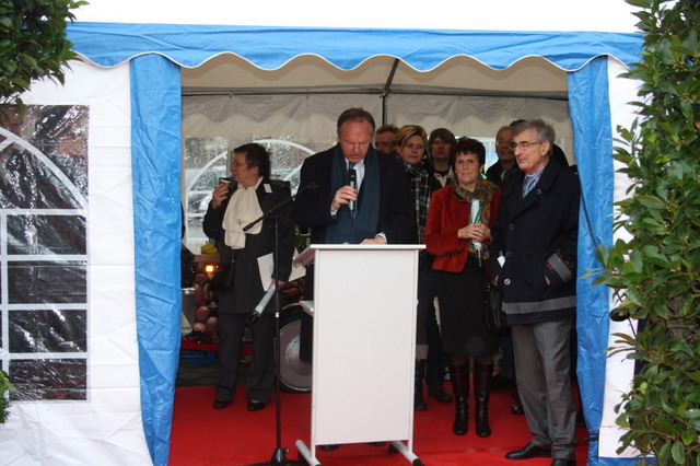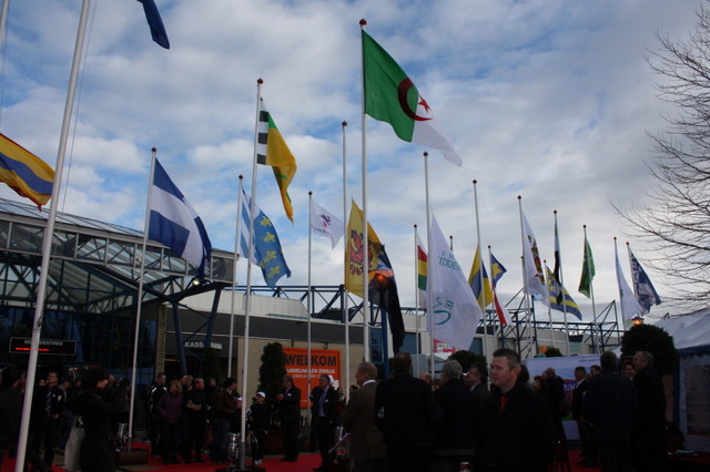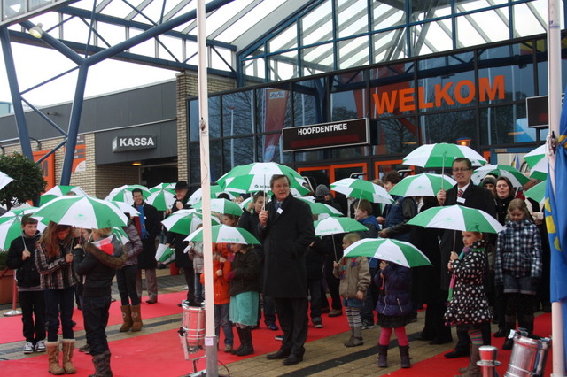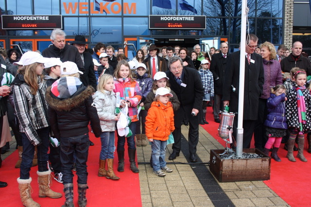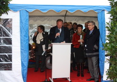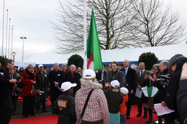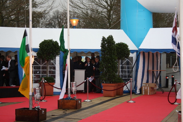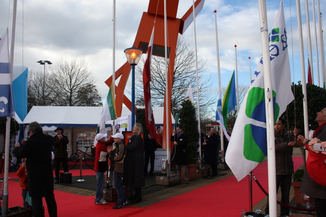 De burgemeesters staan klaar om hun vlag te hijsen.