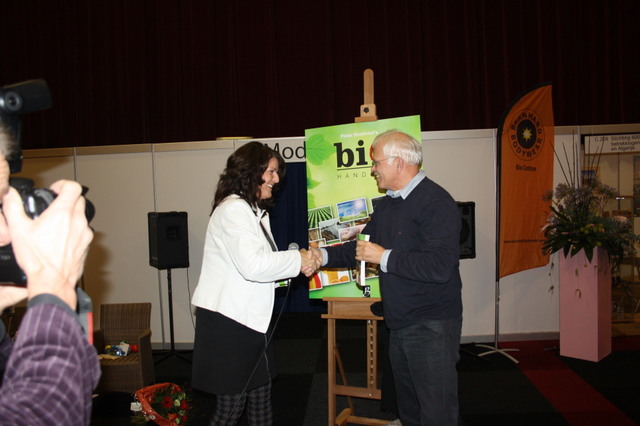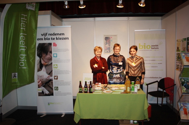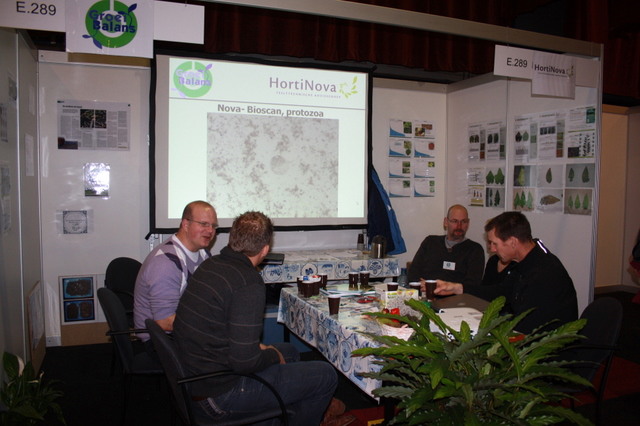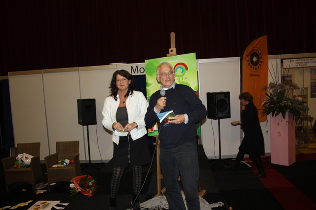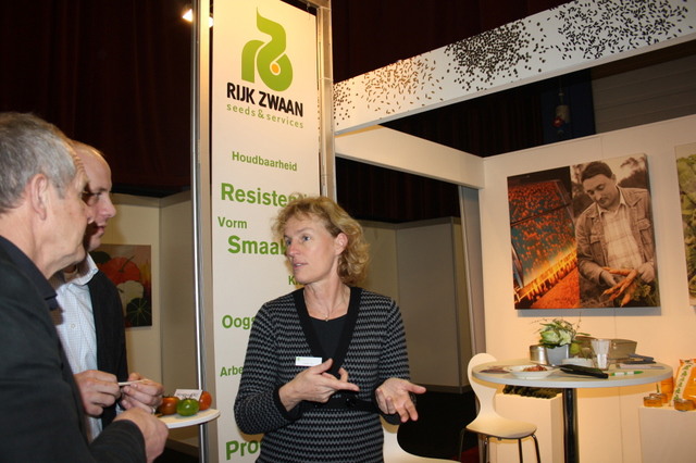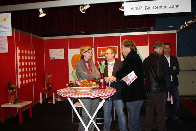 Ingrid Rog van Bio-Center Zann druk in gesprek.