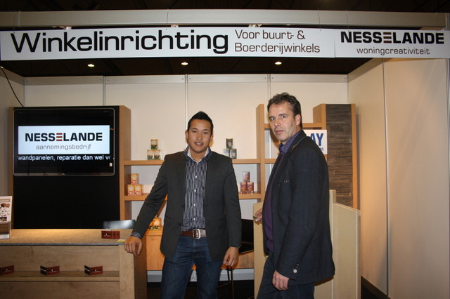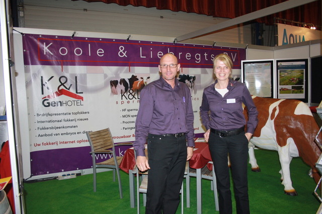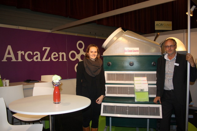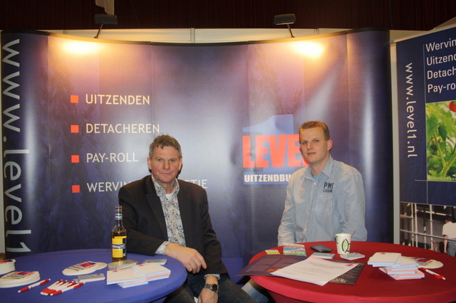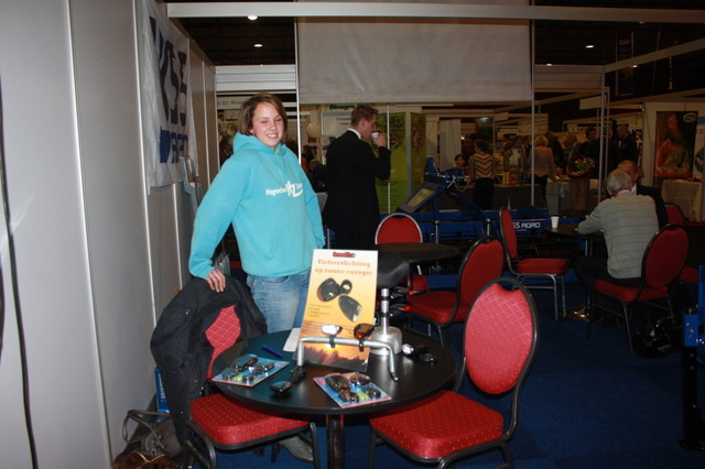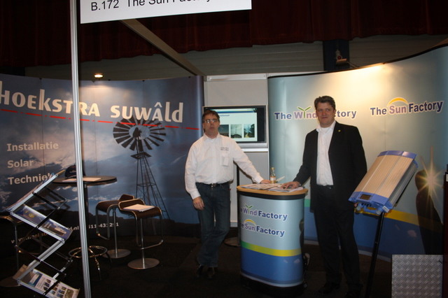 Geen familie, maar toch twee Hoekstra's in één stand: Piet Gosse Hoekstra van Hoekstra Suwald Installatie en Klaas Hoekstra vertegenwoordigt The Sun Factory.