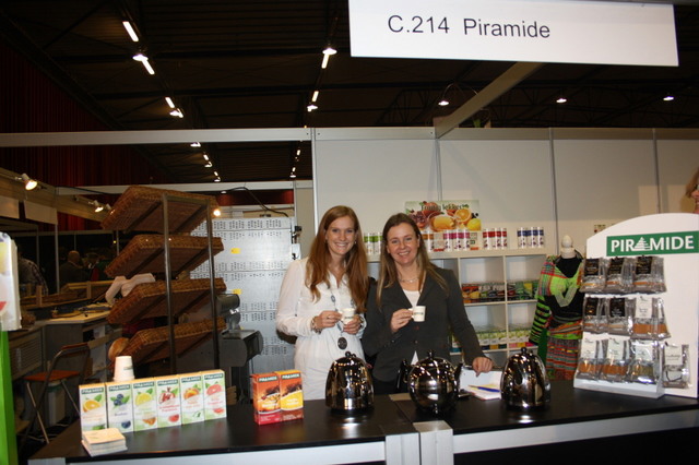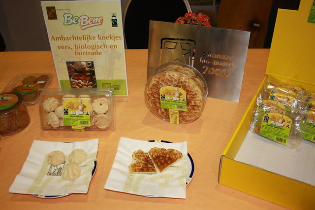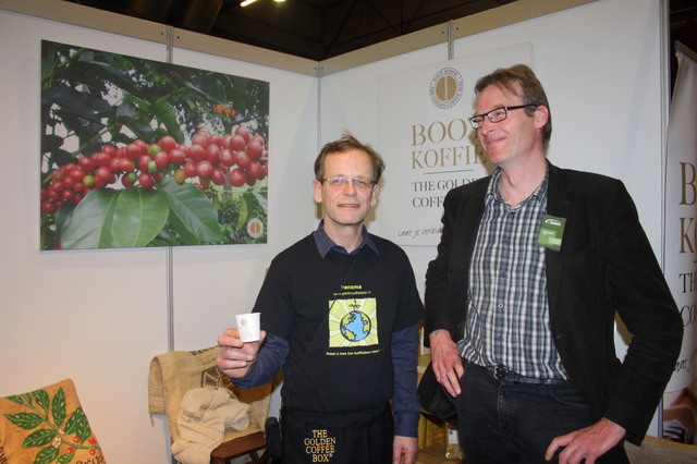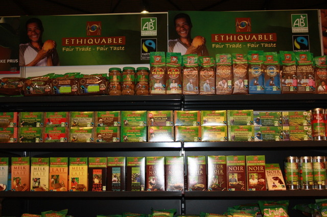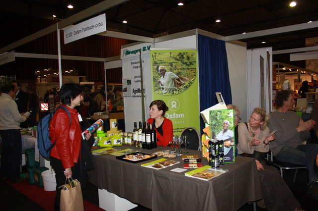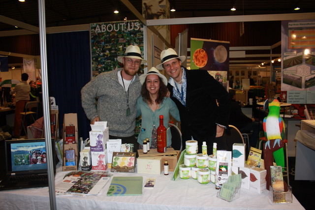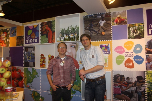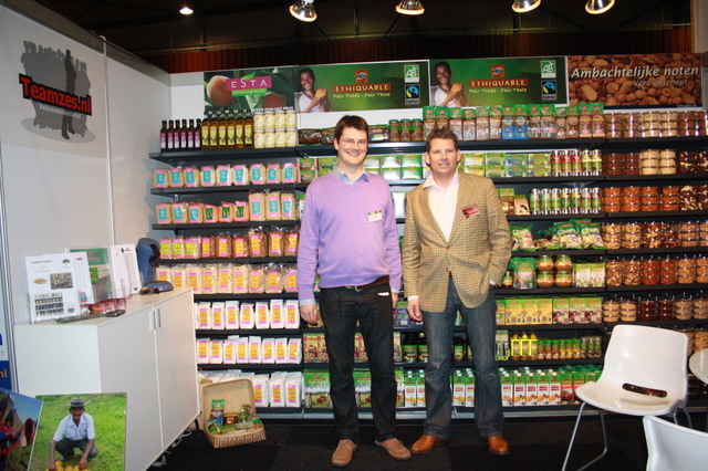 Stephan Vincent en Pieter B.F. Dirven van Teamzes. Zij laten de bezoekers kennismaken met producten van Ethiquable.