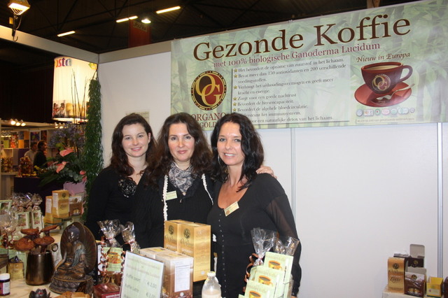 De dames Tessa Rijntalder, Karin Telepary en Nicole Schlooz vertellen meer over bio-koffie van Organo Gold.