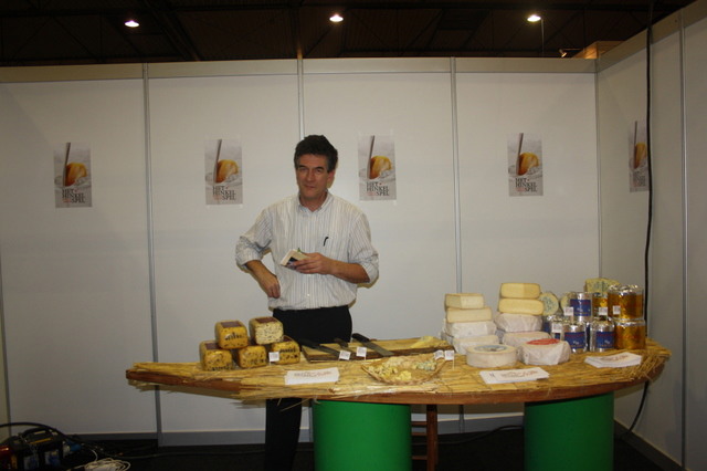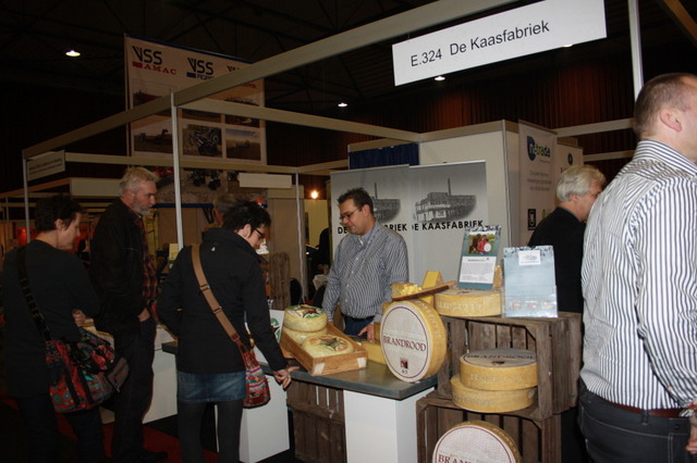 Bij de stand van De Kaasfabriek laat Erik van Dam bezoekers kaas proeven.