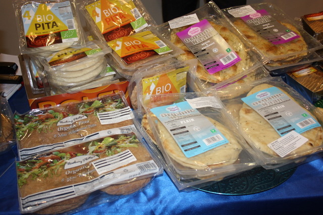 Een klein deel van het assortiment van Market Endeavour, onder meer de bio-pitabroodjes.
