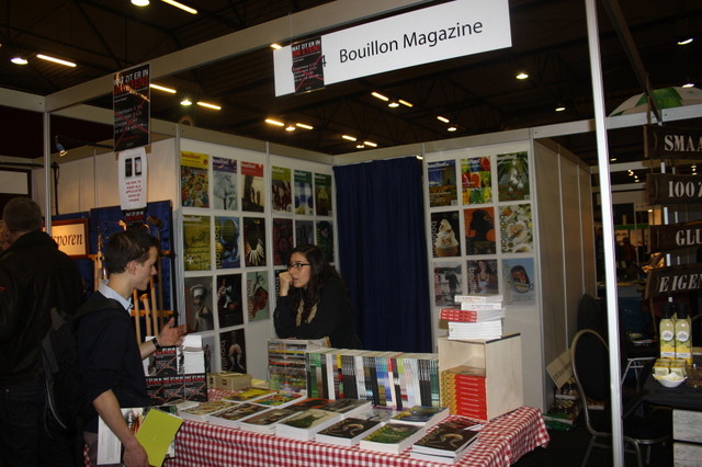 De stand van Het Hinkelspel bemand door Alexander Claeys.
