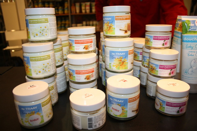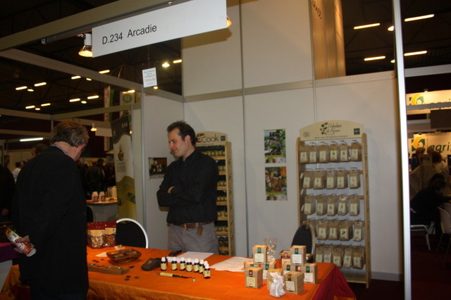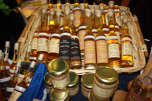 Bertrand van Buchem geeft informatie over zijn verschillende oliën: argan-, walnoot-, hazelnoot- en olijfolie.