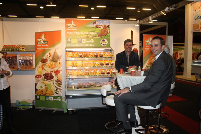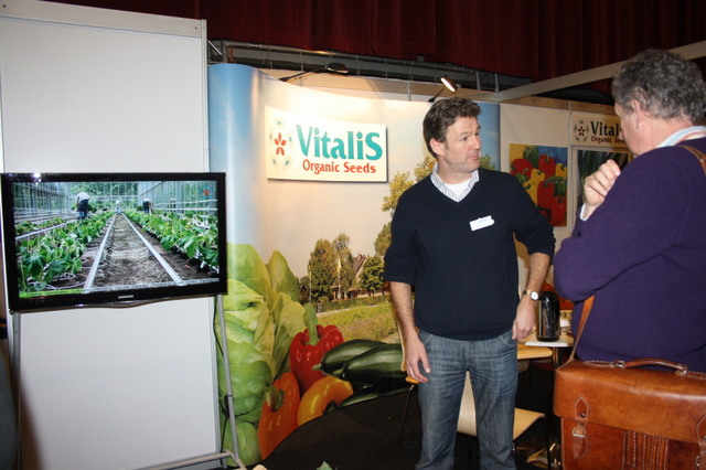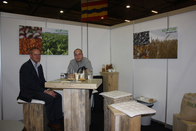 Michaël Wilde en Jeroen Sleijffers in de kleurrijke stand van Eosta.