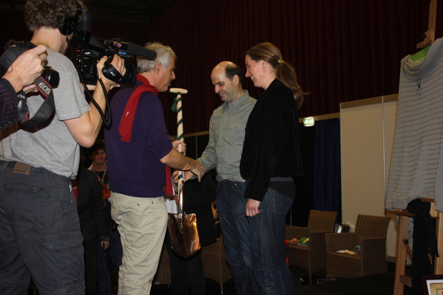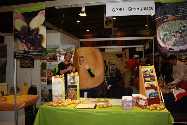 Bij Greenpeace zijn Herman van Bekkem en 'aardappel' Simone Langley te vinden.