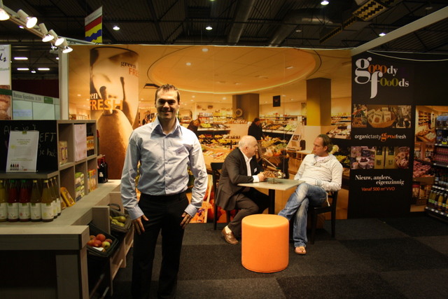 Roelof Hulst in de stand van Gooody Fooods (Natudis).
