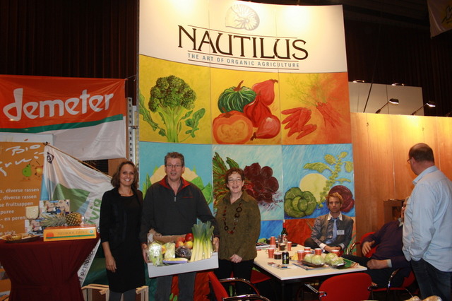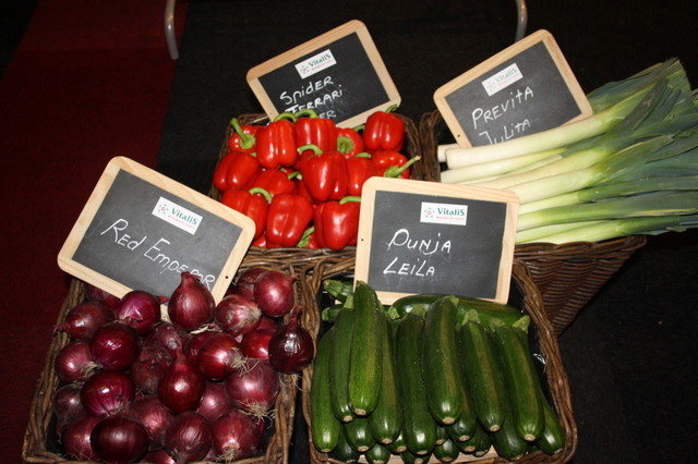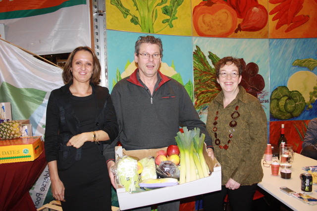 Ad Lievense, Leoniek vd Graaf en Adriaan Jansen van met de groenten van Naturelle.
