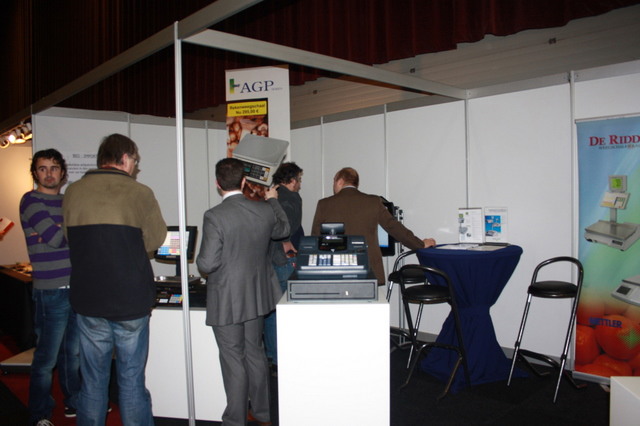 Carel Jansen van Omni-Pack had altijd goede moppen te vertellen aan de stand.