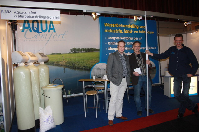 Jan (links) en Jeroen (rechts) geven informatie over Aqua Comfort, waterbehandelingstechnieken.