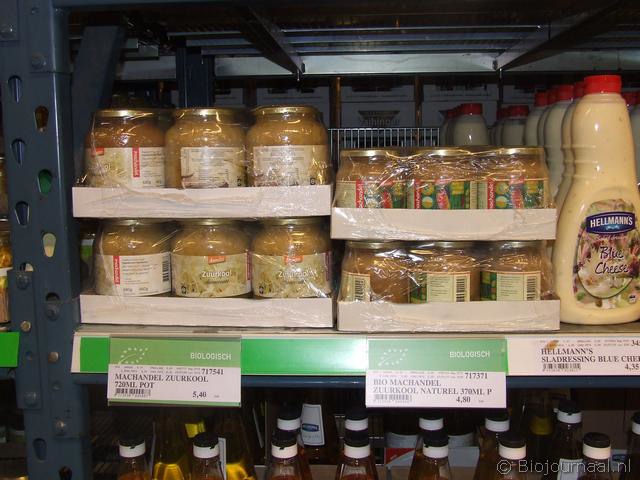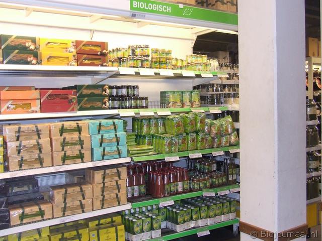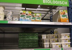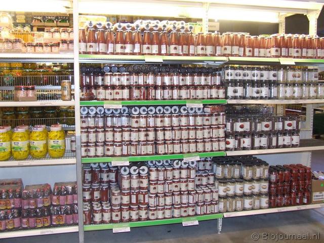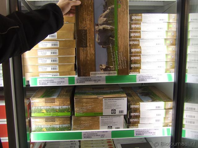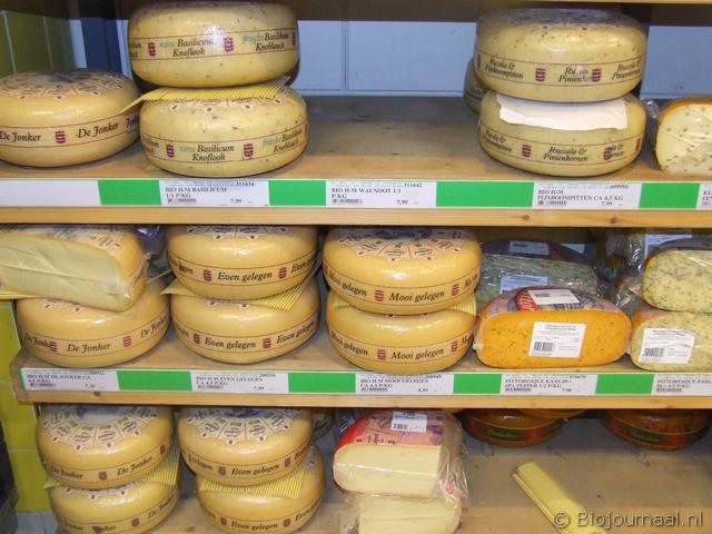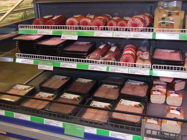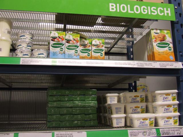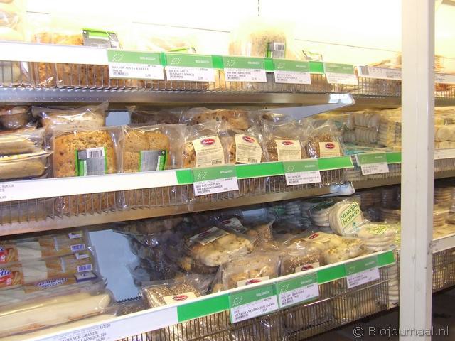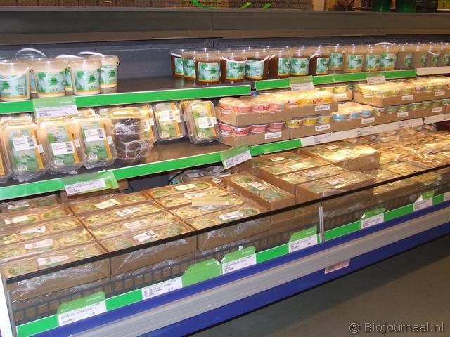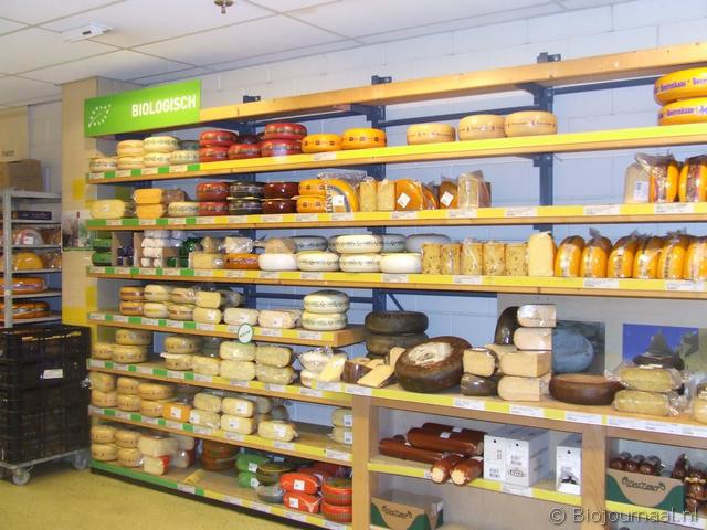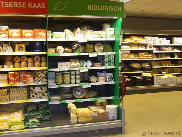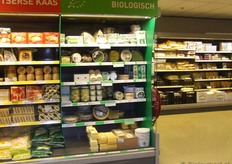 Apart gedeelte van de planken gereserveerd voor biologische kazen.