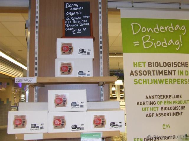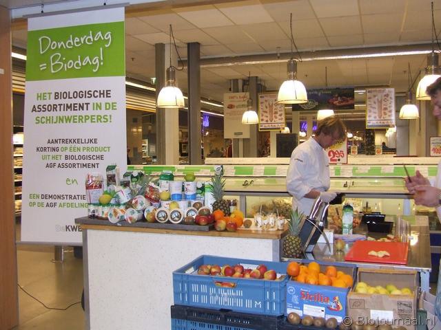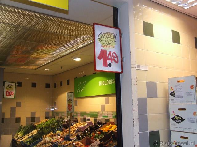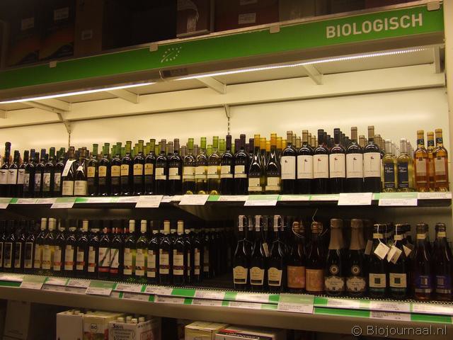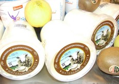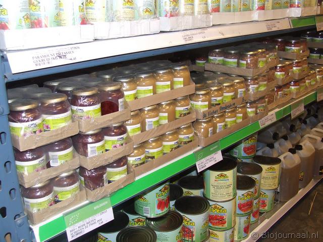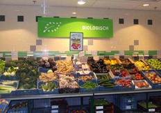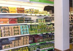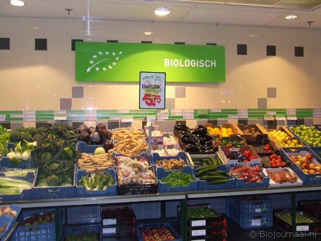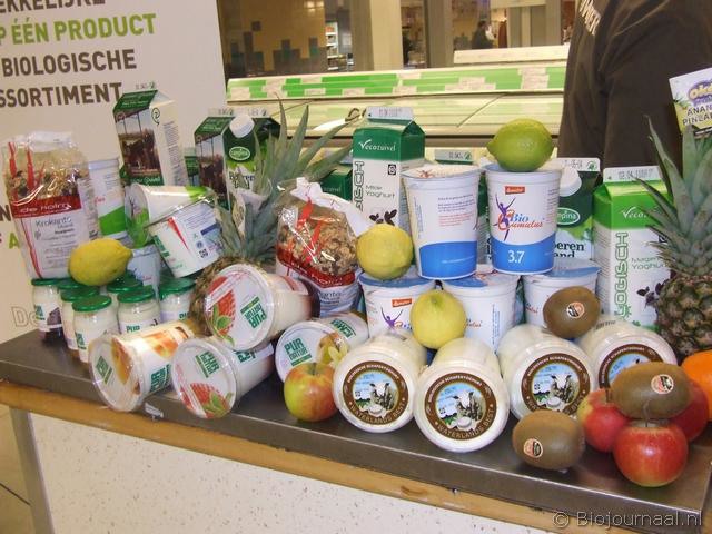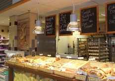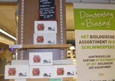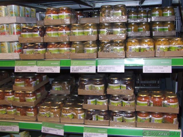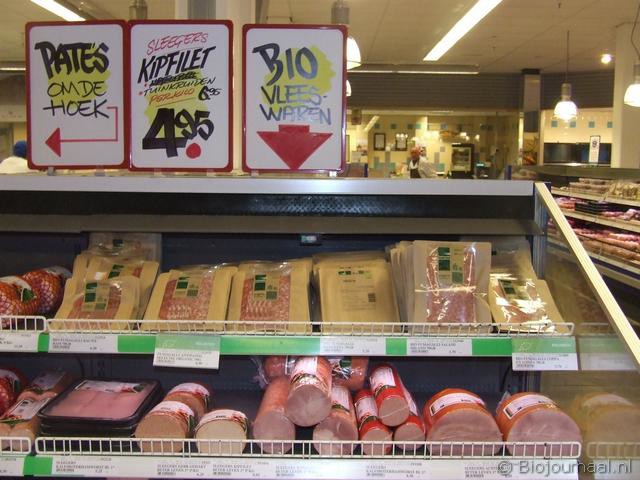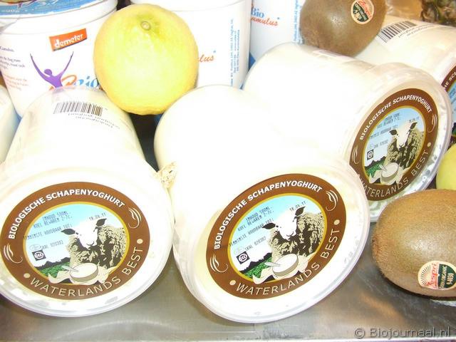 Apart gedeelte van de planken gereserveerd voor biologische kazen.