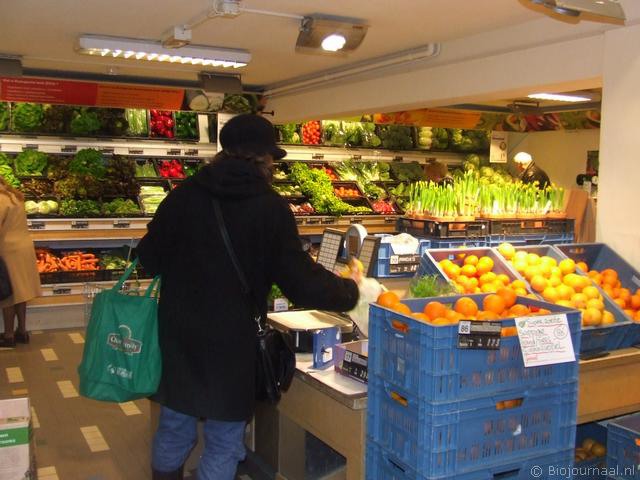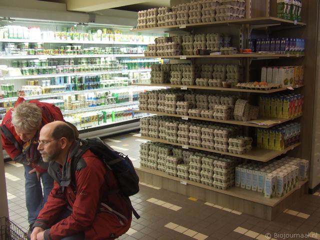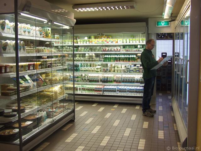 Geïnteresseerde klanten bekijken de zuivel nader.