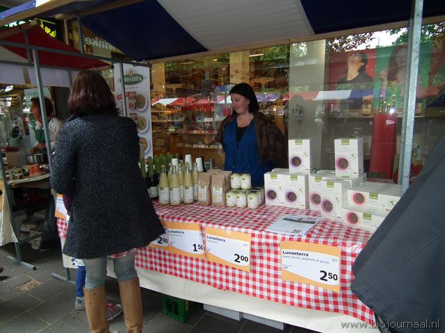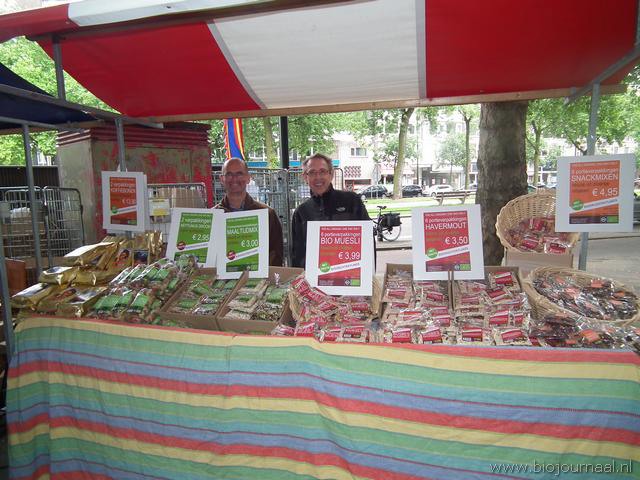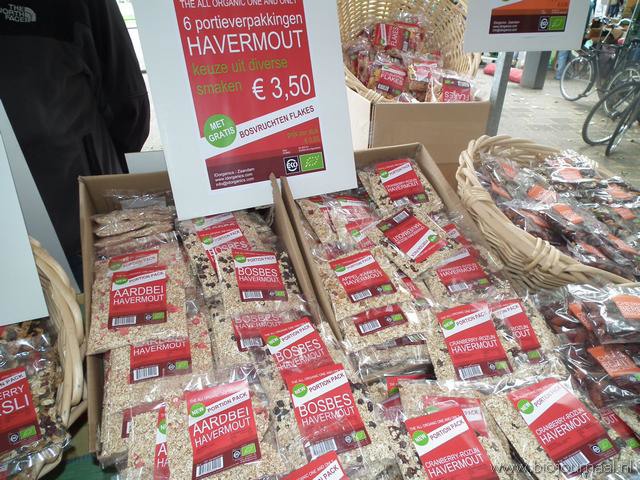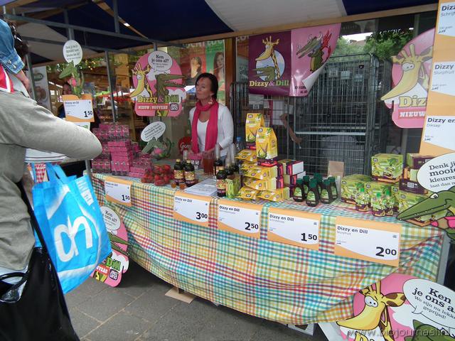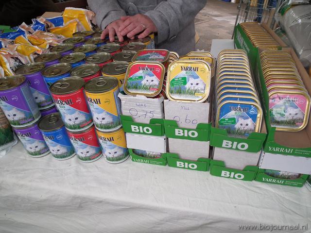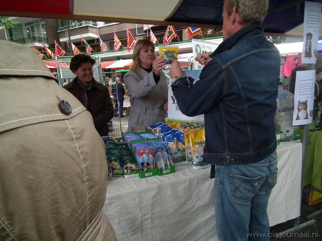 "Actie met het biologische kattenvoer. "De markt is echt goed geregeld. Toen we hier vanmorgen aankwamen, hoefden we alleen nog maar zelf de stand in te richten", aldus Jolanda."