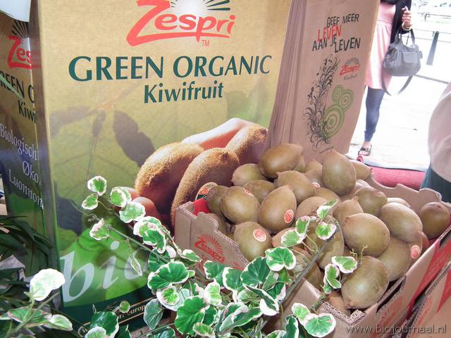 Yvonne den Hollander en Patricia Lodewijks met de biologische kiwi's van Zespri.