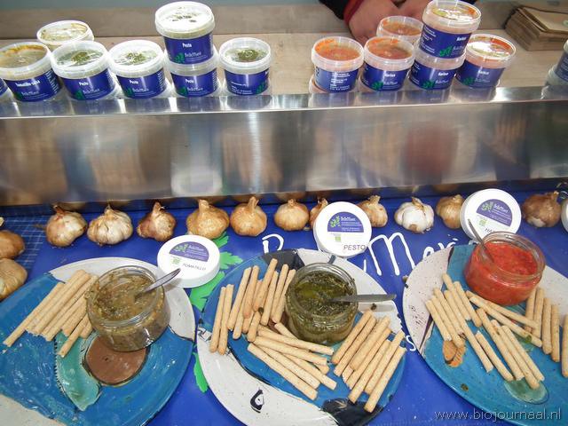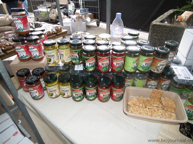 In de stand ernaast was ruimte ingeruimd voor de pesto's van het eigen merk.