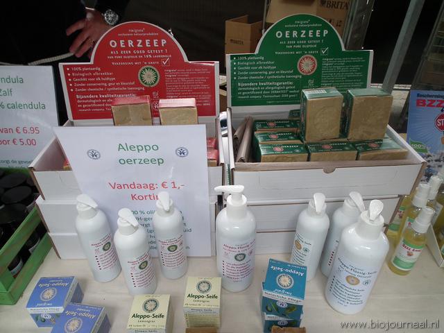 Korting op de Oerzeep van Aleppo tijdens de markt.