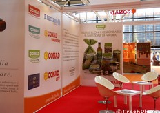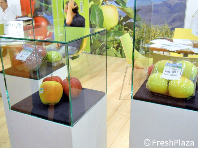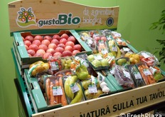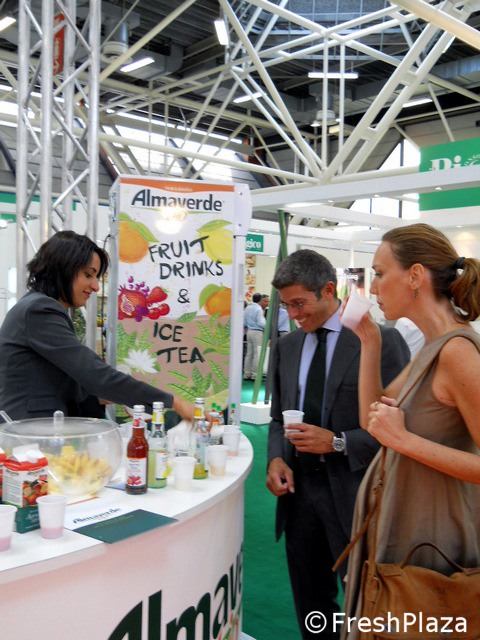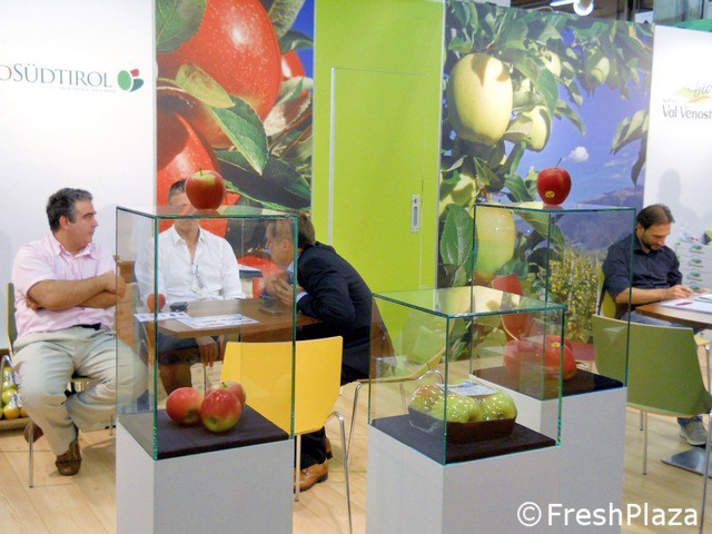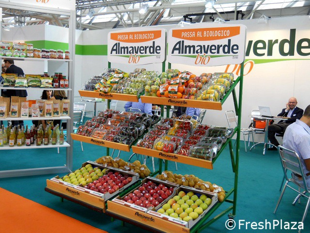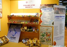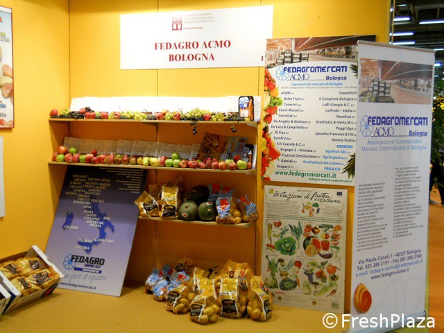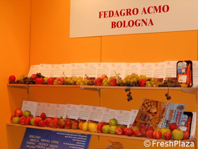 Display met fruit in de stand van Fedagro Acmo Bologna.