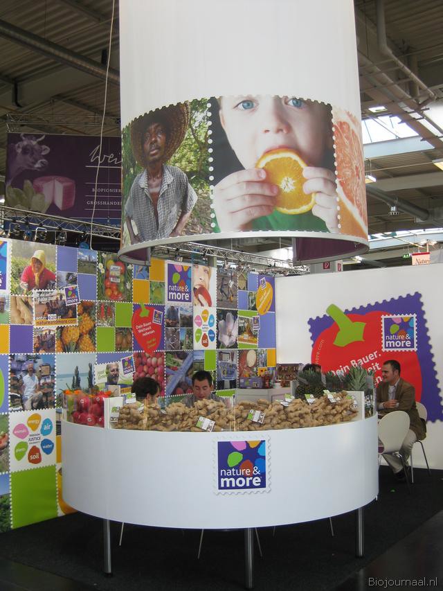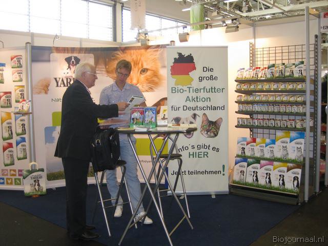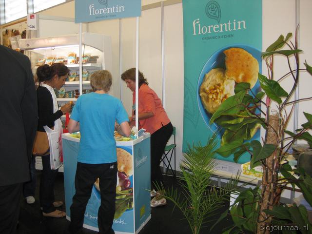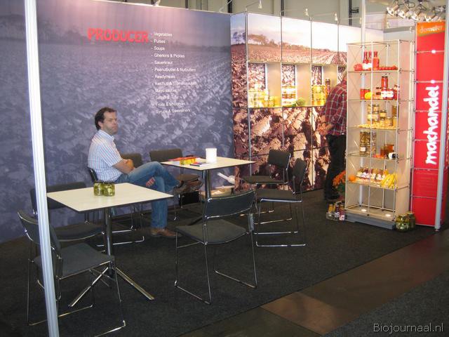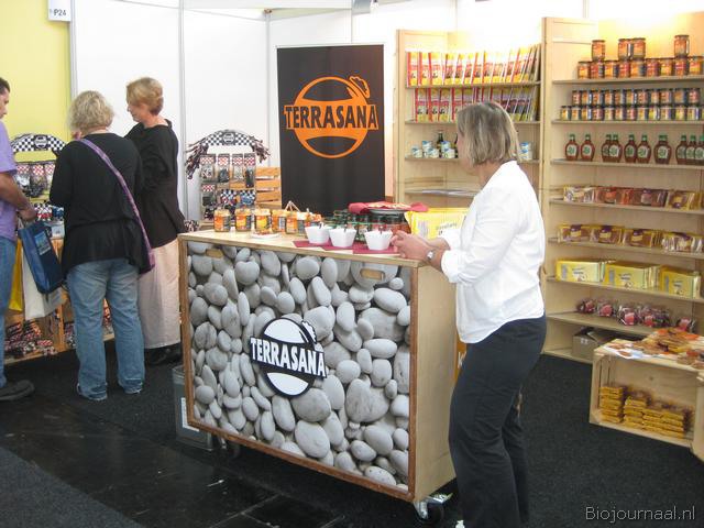 Brede range aan TerraSana-producten in de stand. Bezoekers konden onder meer de notenpasta's proeven.