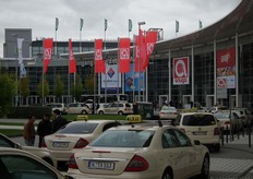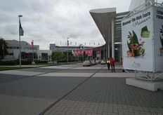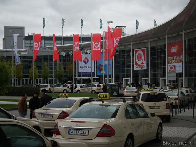 De Noordelijke ingang van het congresgebouw van Koelnmesse waar Anuga 2011 georganiseerd werd. Sponsor Maroc Export pakt groot uit op de beurs.