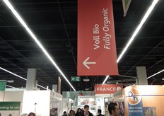 De Bio-hal. Rechtsonderin een deel van de stand van het Nederlandse Doens Food Ingredients.