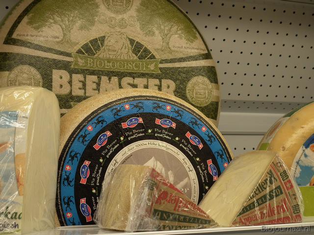 Biologische kaas van Beemster in de schappen van Biopress. Links en rechts is nog een stukje te zien van de Polderkaas Biologisch van Kaasmakerij Henri Willig BV