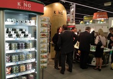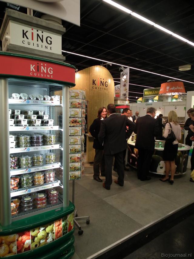 De stand van King Cuisine. Links vooraan op de foto de biologische olijven van deze producent van koelverse internationale specialiteiten
