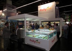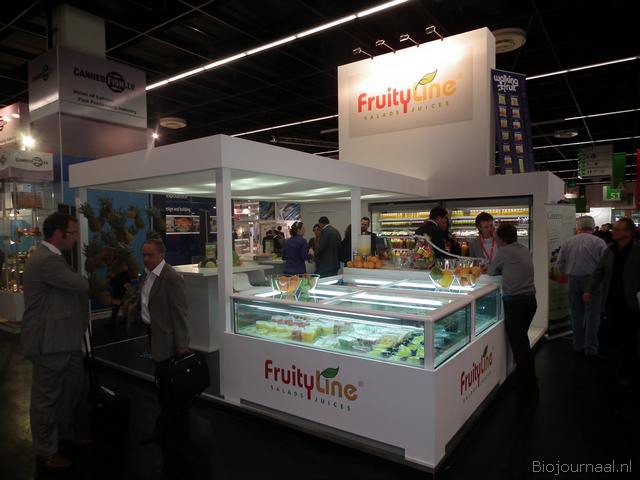 De stand van Fruity Line fruitsalades werd druk bezocht. Rechts zien we Anton Kooren (op de rug) in gesprek.