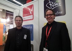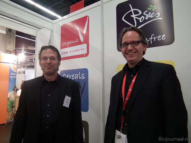 René van der Locht (links) en Rob van den Berg van Graanpletterij De Halm bv in hun stand in de Biohal