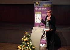 Marian Blom van Bionext was -naar eigen zeggen- aangesteld om de drie boeren die hun innovaties kwamen tonen in de toom te houden.