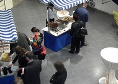 De lunch kon zittend of aan sta-tafels genuttigd worden.