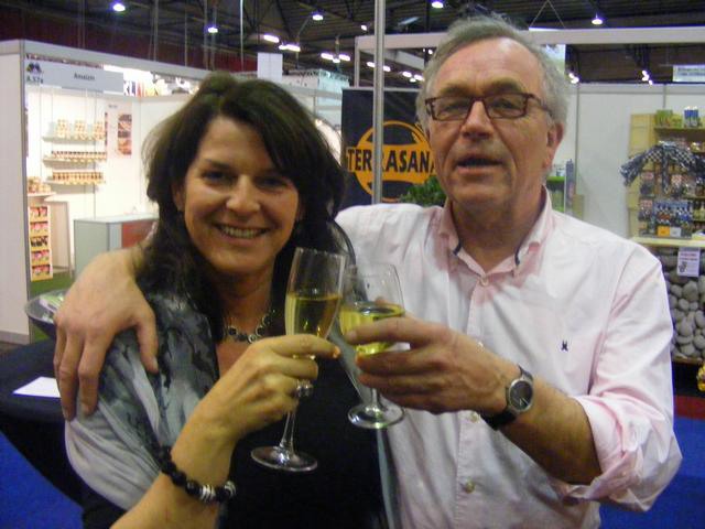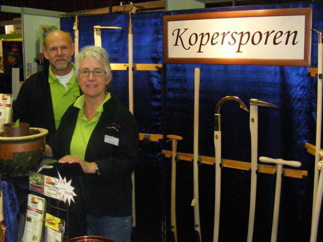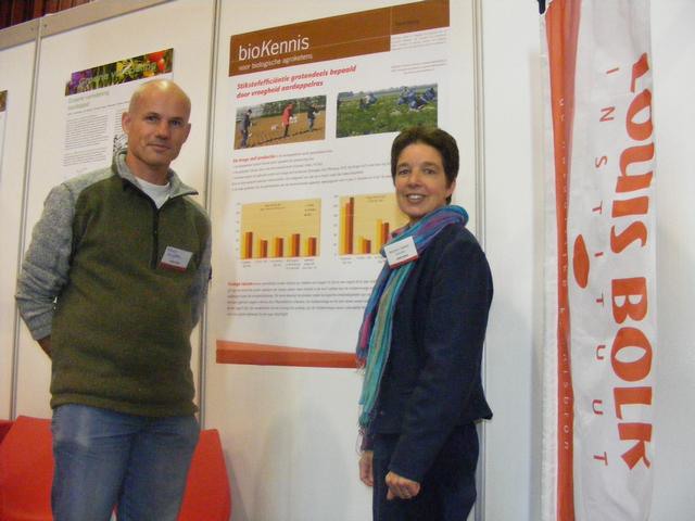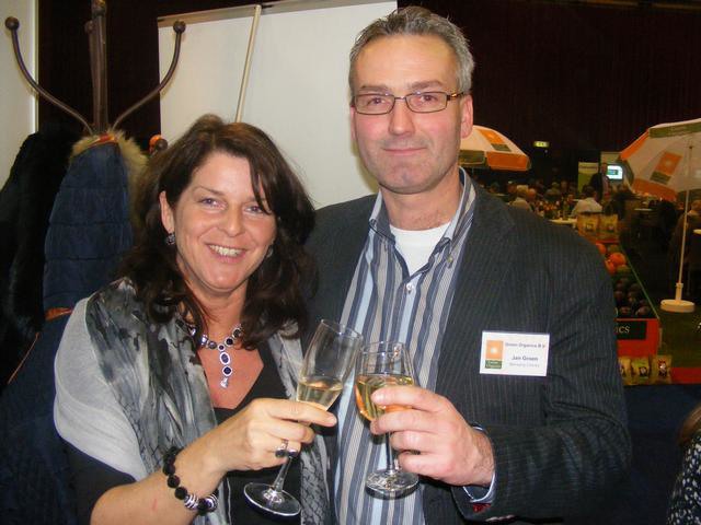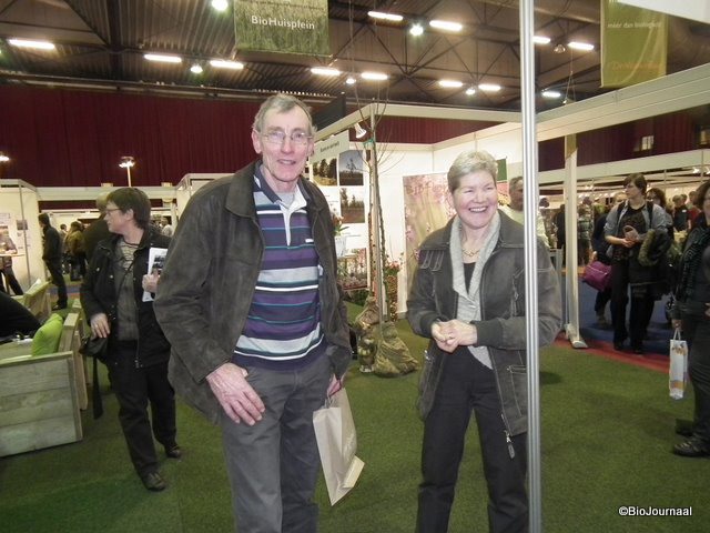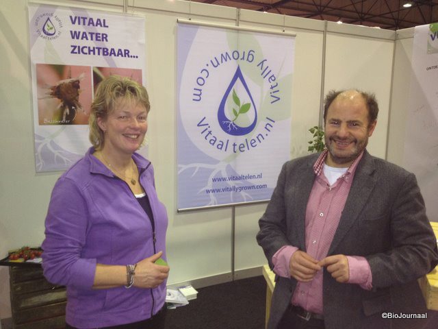 Ineke Moerman en Remy Mosch van Acqua Universo. Op de BioVak is het startschot gegeven voor 'Vitaal telen on tour'. Vitaal Telen is ontwikkeld voor de tuinbouw en is een interactie tussen kweker en vitaal water.