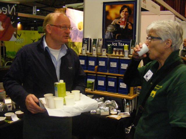 Hot and Cool serveert de nieuwe ijsthee in hun stand op de BioVak. De biologische ijsthee bevat minder suiker en is te krijgen in de smaken mint, orange en ananas-passievrucht.