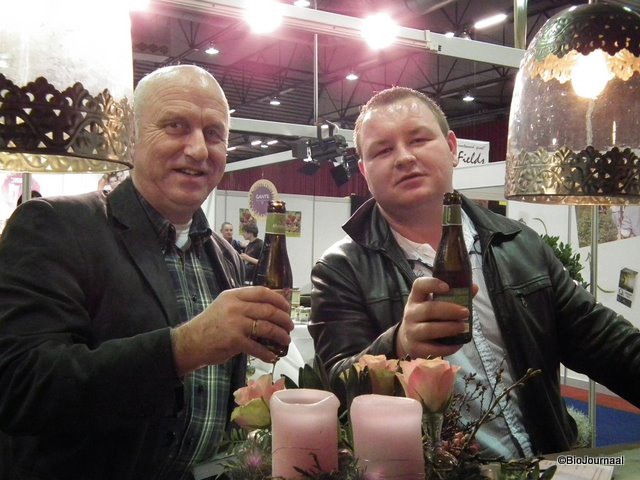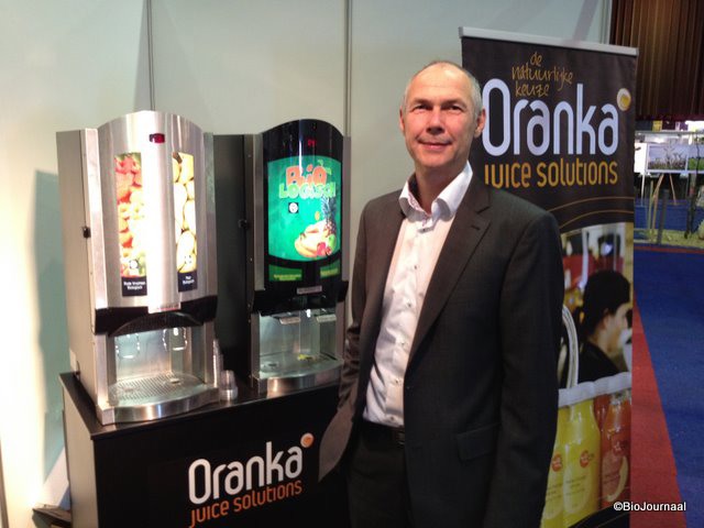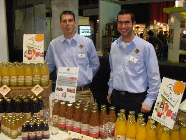 Elger Wiersma en Wilm Koemans van Schulp vruchtensappen. Het biologische assortiment van Schulp is uitgebreid met grote flessen.