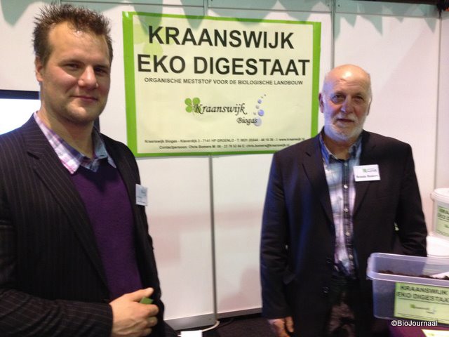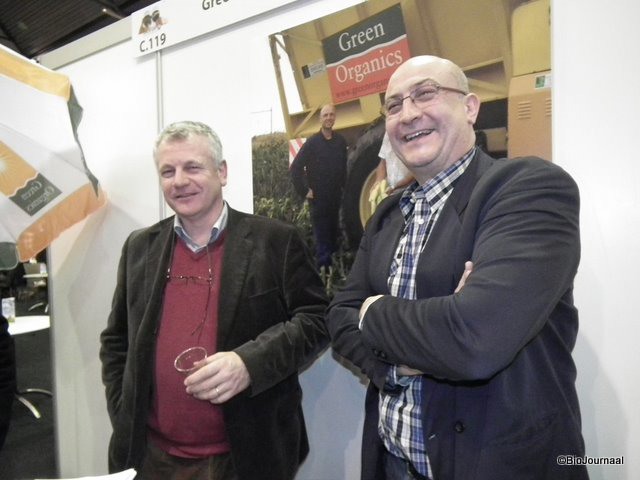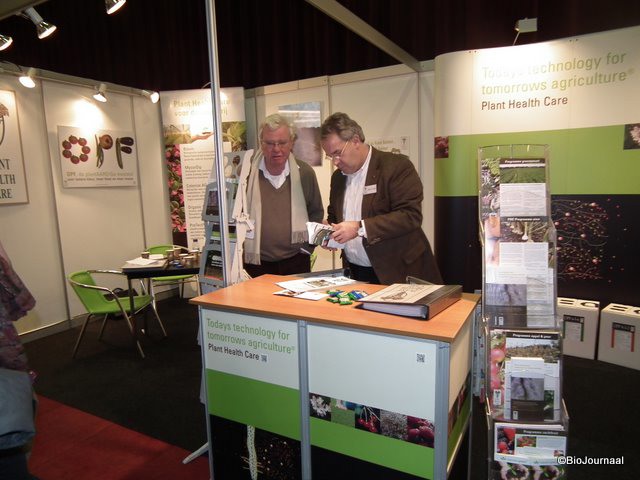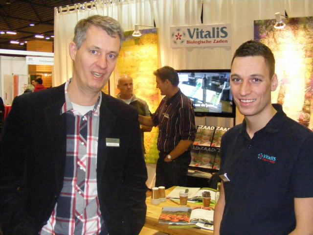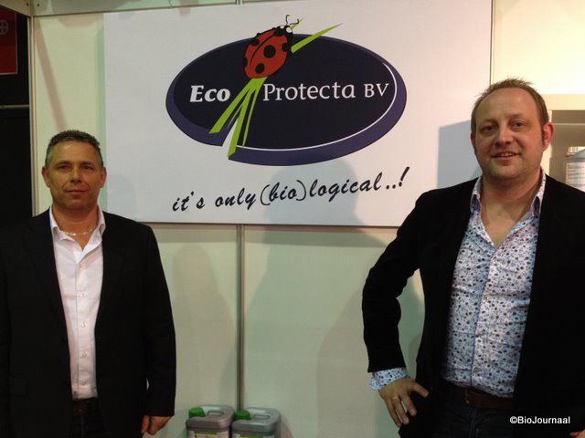 Pieter Rienstra van EcoProtecta en Nico van der Spek van Hortus Supplies International deelden de stand op BioVak.