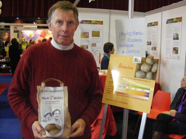 Niek Vos toont zijn eigen biologisch geteeld aardappelras Bionica, ook wel bekend als Niek's Witte.