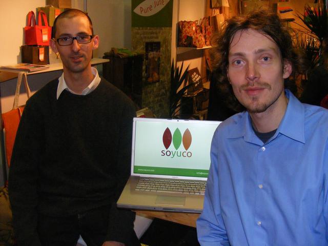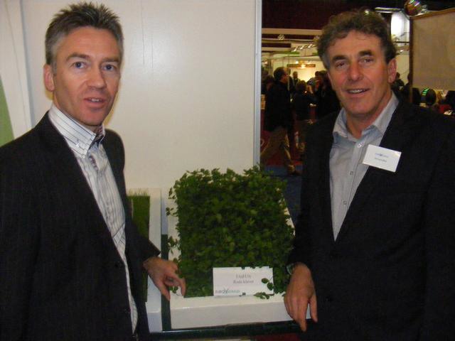 Joffrey Mandersloot en Jean Waucomont van Soyuco. Dit nieuwe bedrijf stond in de stand van Pure Jute en is heeft een assortiment geotextiel en agrotextiel. Meer info is te vinden op www.soyuco.com.