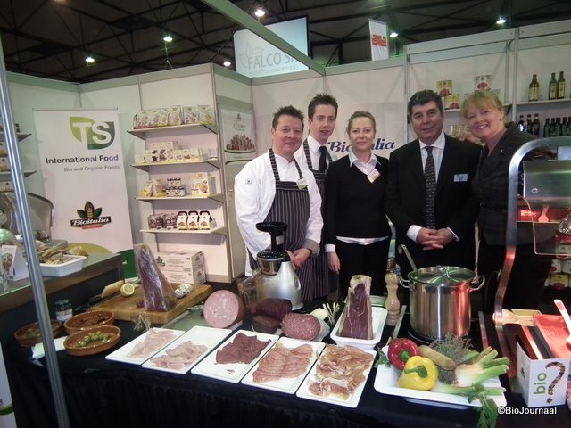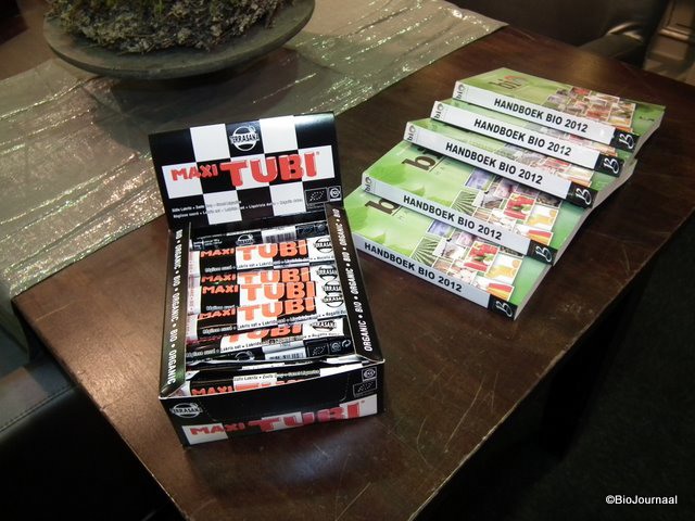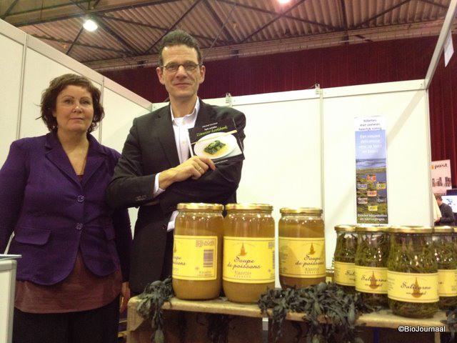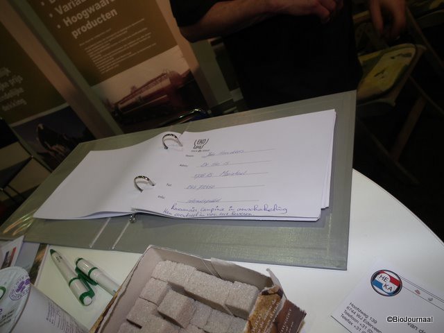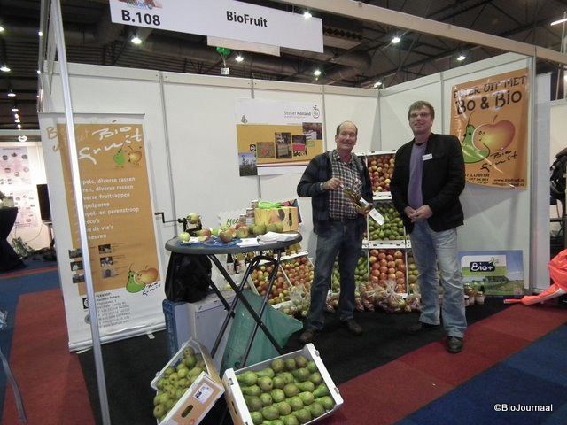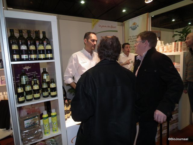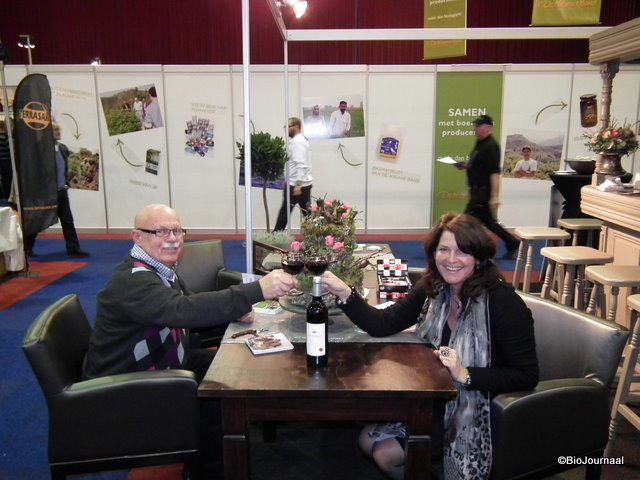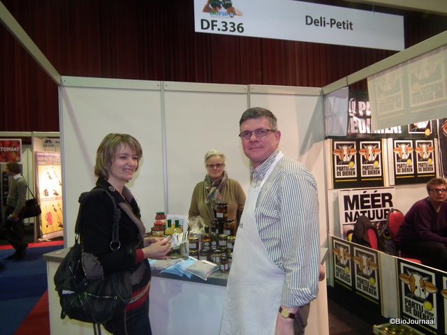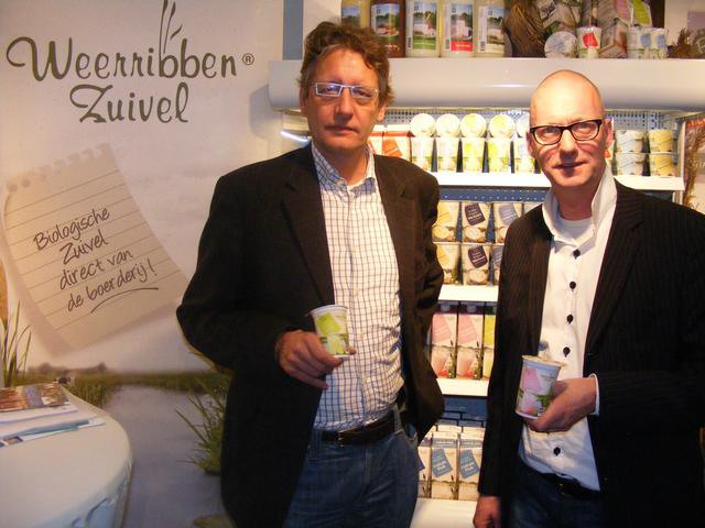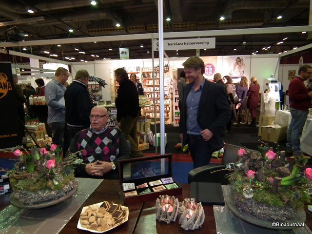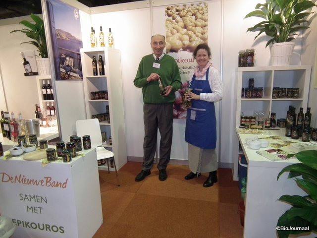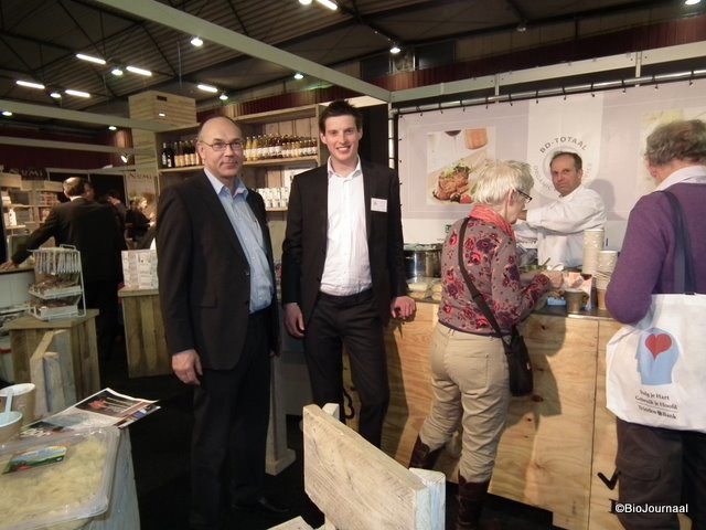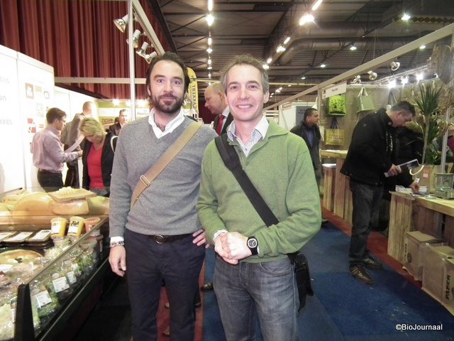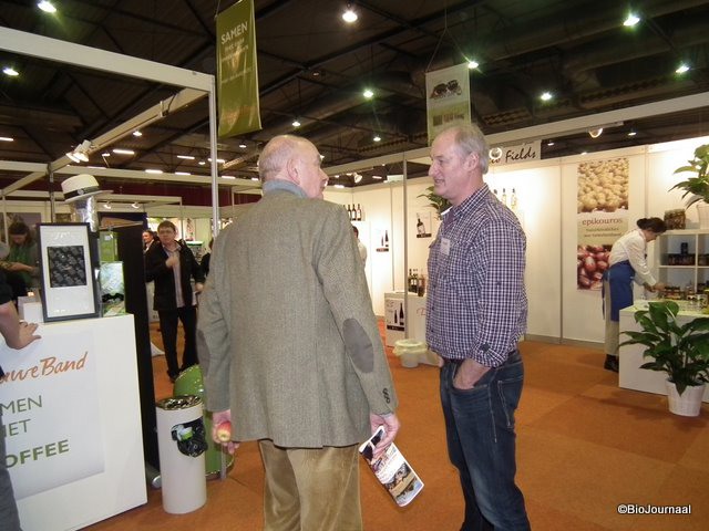 Rigaz Hartman en Edwin van Dongen van Biolive (verse bio-olijven en delicatessen) brachten ook een bezoek aan de BioVak.